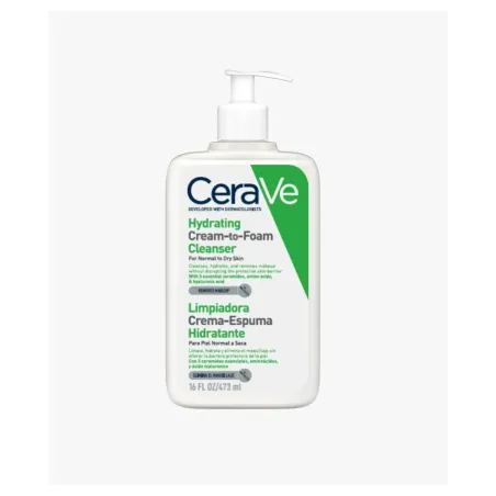 Las personas con piel seca pueden disfrutar de las ventajas de una crema limpiadora que hidrate y de una fórmula espumosa que proporcione una sensación refrescante, sin tener que elegir entre ambas. Desarrollado con dermatólogos, el Limpiador Crema-Espuma Hidratante de CeraVe comienza como una crema antes de transformarse en una suave espuma. Esta fórmula suave y sin perfume contiene 3 ceramidas esenciales, aminoácidos y Ácido Hialurónico, que trabajan juntos para ayudar a preservar la barrera de protectora de la piel y a retener la humedad.​