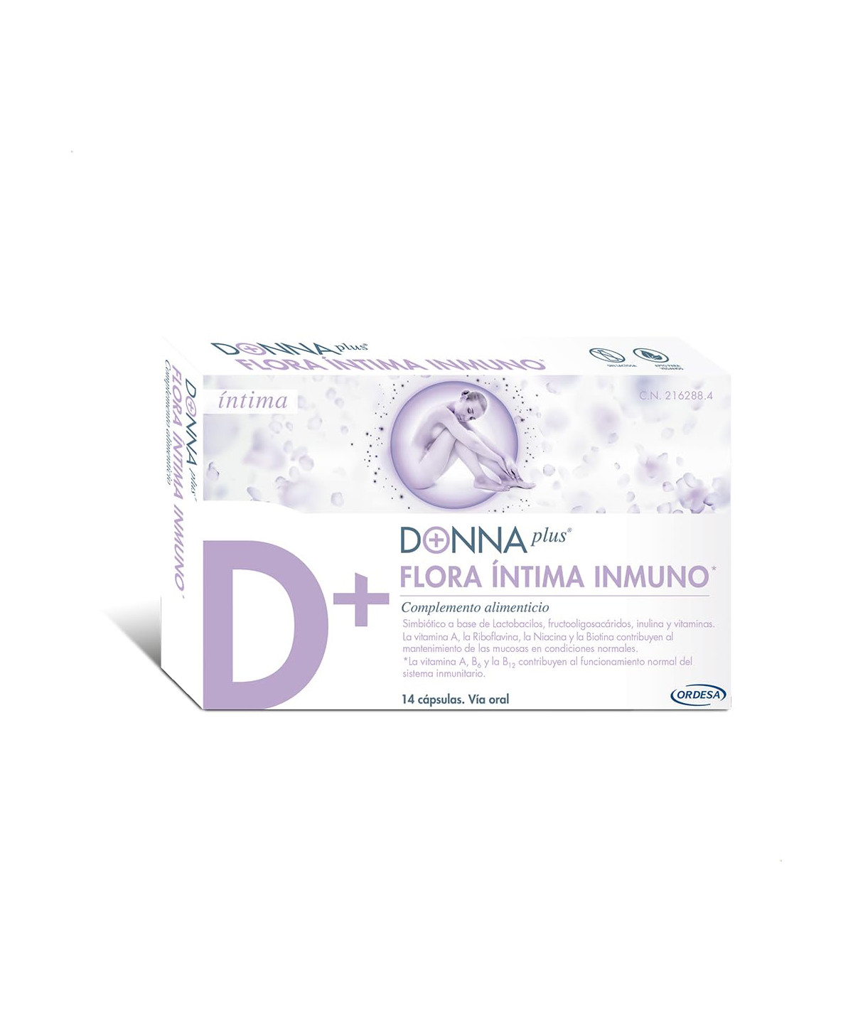 DONNAplus Flora íntima es un complemento alimenticio simbiótico destinado a recuperar el equilibrio de la flora vaginal que combina en su composición: Lactobacillus crispatus LBV88, Lactobacillus rhamnosus LBV96, Lactobacillus jensenii LBV116 y Lactobacillus gasseri LBV150N con fructooligosacáridos. Estas cepas forman parte habitual de la flora vaginal, y diferentes ensayos clínicos han demostrado que su consumo vía oral puede ayudar a recuperar y mantener el equilibrio de la misma.