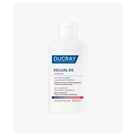 Ducray Kelual DS Intensive Champú Anticaspa 100 ml es un tratamiento capilar que elimina la caspa persistente, calma el picor y reduce la descamación, dejando el cuero cabelludo limpio, fresco y equilibrado.