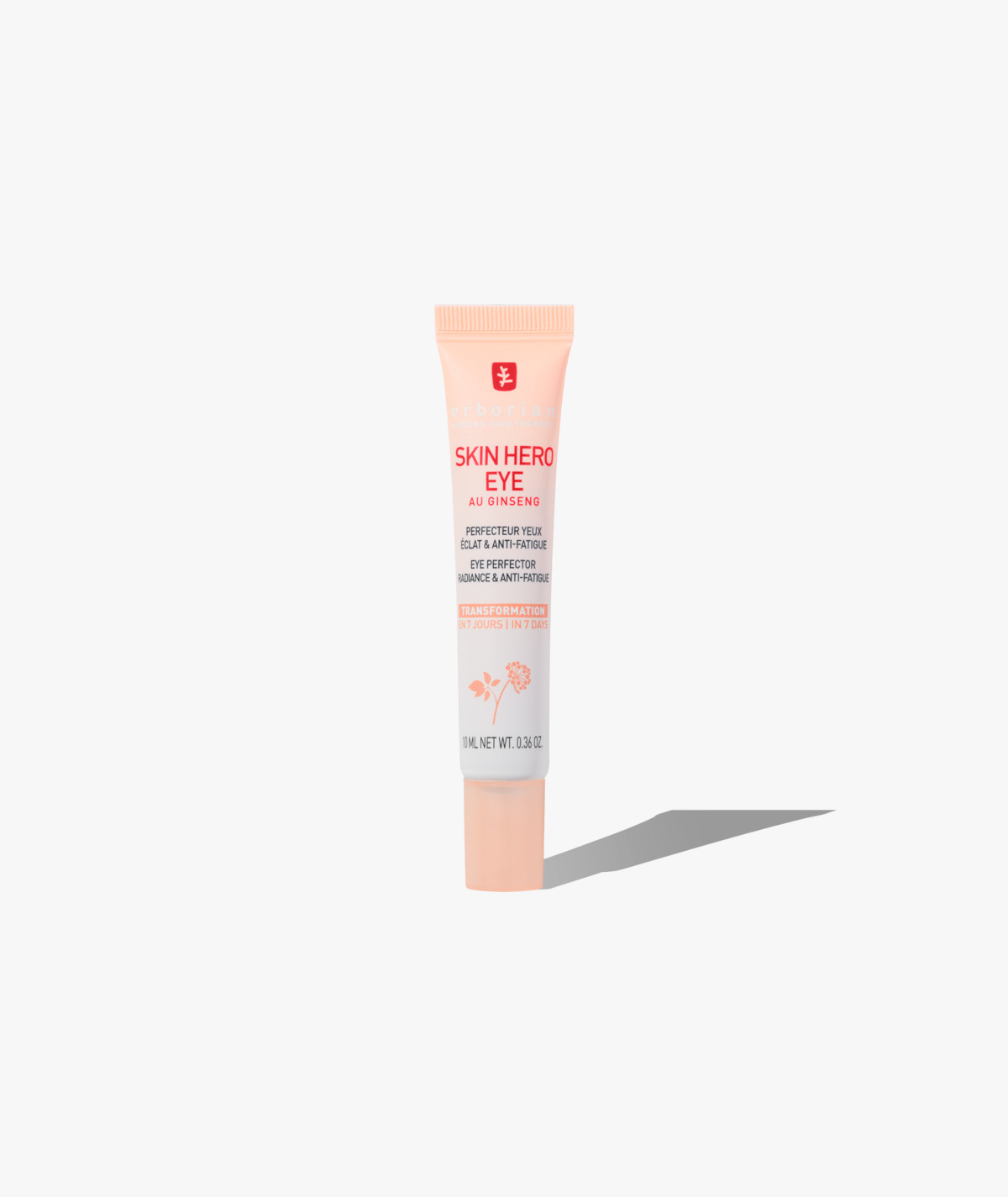 Skin Hero Eye de Erborian es un cuidado híbrido que combina tratamiento y efecto perfeccionador inmediato en la zona del contorno de ojos. Su fórmula sin color ayuda a reducir la apariencia de bolsas y líneas finas, hidrata intensamente y aporta luminosidad natural, consiguiendo una mirada descansada y revitalizada desde la primera aplicación.