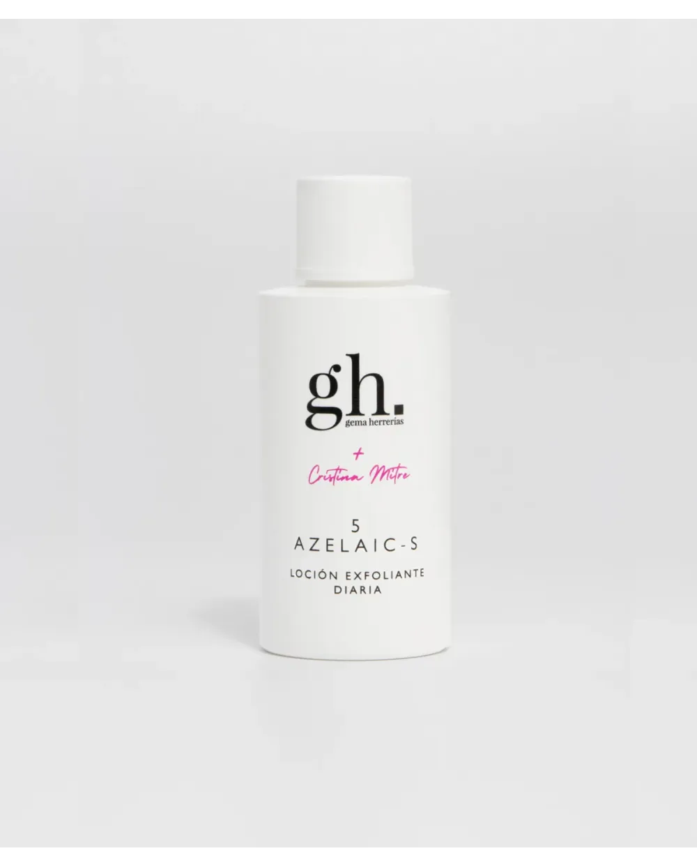 gh x Cristina Mitre 5 AZELAIC-S: Un super ventas de gh. Una loción exfoliante diaria, perfeccionadora del poro e iluminadora. Formulada con Azeloglicina®, ácido salicílico y extracto de algodón. Con acción despigmentante sobre las manchas, equilibra la piel y mantiene los poros limpios, evitando la formación de puntos negros y comedones. Además, mejora la textura de la piel para revelar, así, la luminosidad cutánea.
