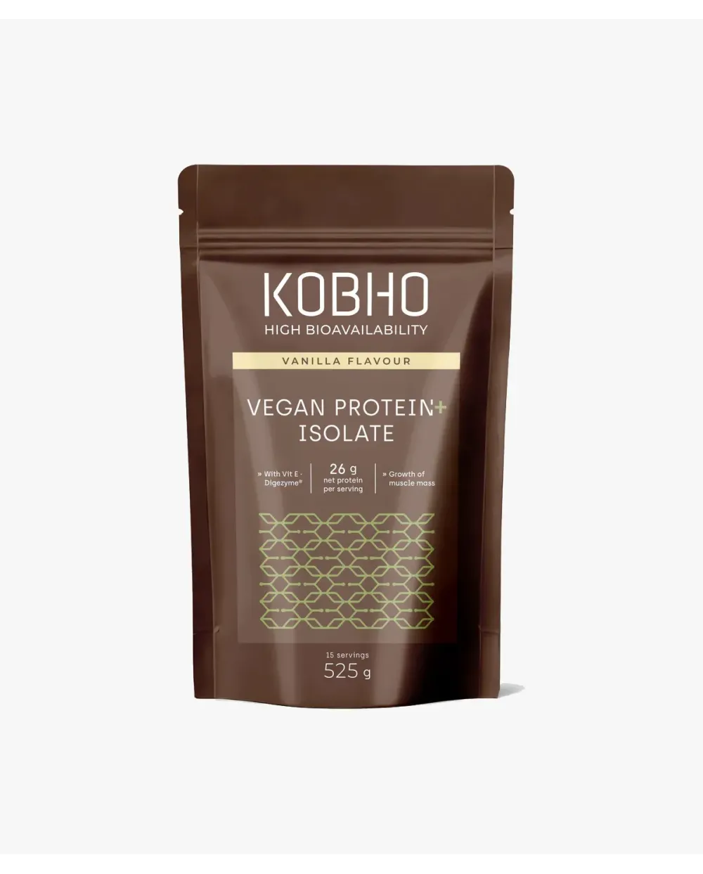 Kobho Proteína Vegana Aislada Sabor Vainilla 525 g está elaborada a partir de proteínas vegetales de alta calidad (como guisante o arroz), cuidadosamente seleccionadas para garantizar un perfil completo de aminoácidos esenciales y una óptima biodisponibilidad.