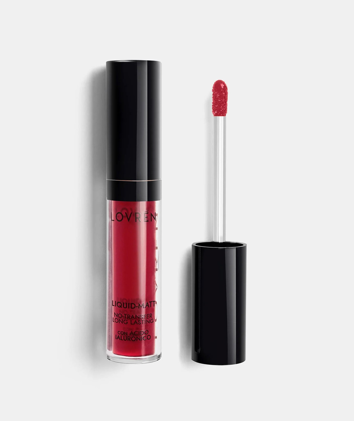 Labial líquido mate de larga duración y efecto intransferible.