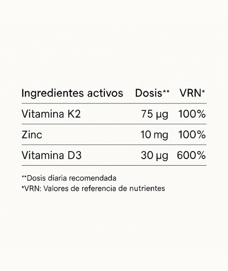 La combinación estratégica de Vitamina D3, Vitamina K2 y Bisglicinato de Zinc ofrece beneficios multiplicados: