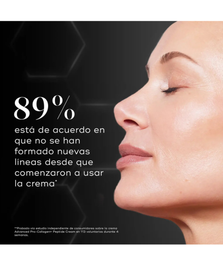 Ayuda a aumentar la producción de colágeno en un 45 %[1] y promueve la longevidad óptima de la piel con la crema Advanced Pro-Collagen+ Peptide Cream. Formulada por expertos con activos avanzados que ayudan a estimular la producción natural de colágeno de la piel para favorecer una firmeza y elasticidad visibles y reducir las arrugas profundas. Ofrece resultados rápidos y clínicamente probados en solo 7 días, a la vez que ayuda a prevenir la aparición de futuros signos de envejecimiento cutáneo.