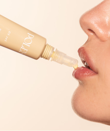 Bálsamo de labios vegano que aporta efecto gloss a tus labios, con SPF 50 de amplio espectro para protegerte de la radiación UV. Este bálsamo repara y protege, pero además va un paso más allá y se convierte en un potente preventivo antiedad. Mejora la apariencia al instante, dejando unos labios suaves y jugosos, con apariencia de más volumen.