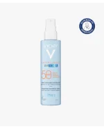 Vichy Capital Soleil UV Aqua Spray SPF 50 es un protector solar en formato spray diseñado para proteger la piel de los rayos UV y prevenir el daño causado por la exposición al sol. Con una alta protección SPF 50, este producto es ideal para pieles sensibles y para su uso en condiciones de alta radiación solar.